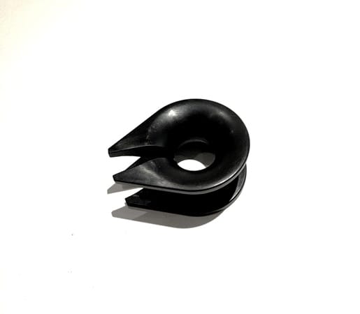 An open thimble with a small steer heel which precludes the part to twist out of the rope. Allows you to assemble an eyebolt.