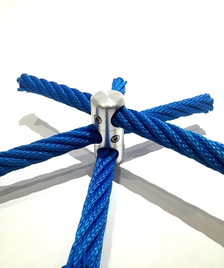 PS16 Twist 3 holes is a perfect way to distribute 3 ropes from a center. 120 degree angles. 3 x 4,2 x 25mm A2 screw are included in the price.